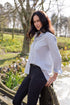 Deluxe and yet practical this linen blend shirt in pale blue pairs perfectly with our black therma riding tights for just the right level of warmth and exceptional comfort.